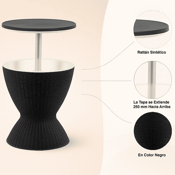 Disfruta tus espacios al aire libre con la Mesa Alta Nami Outdoor Multifuncional de Rattan Sintético. Ideal para terrazas, quinchos o balcones, su diseño resistente a la intemperie combina elegancia y durabilidad. El rattan sintético aporta un look natural y moderno, mientras su altura la hace perfecta como mesa de bar o apoyo. Liviana, fácil de limpiar y versátil. ¡Convierte cualquier rincón exterior en un espacio funcional y con estilo!