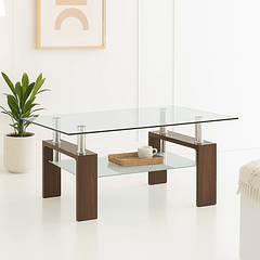 Mesa de centro para living rectangular de vidrio y madera oscura