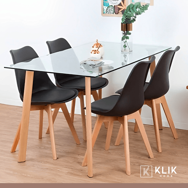 Espectacular y espacioso set de comedor compuesto por 4 sillas tulip negras, y una práctica mesa de vidrio estilo Nórdico de 140x90cm.